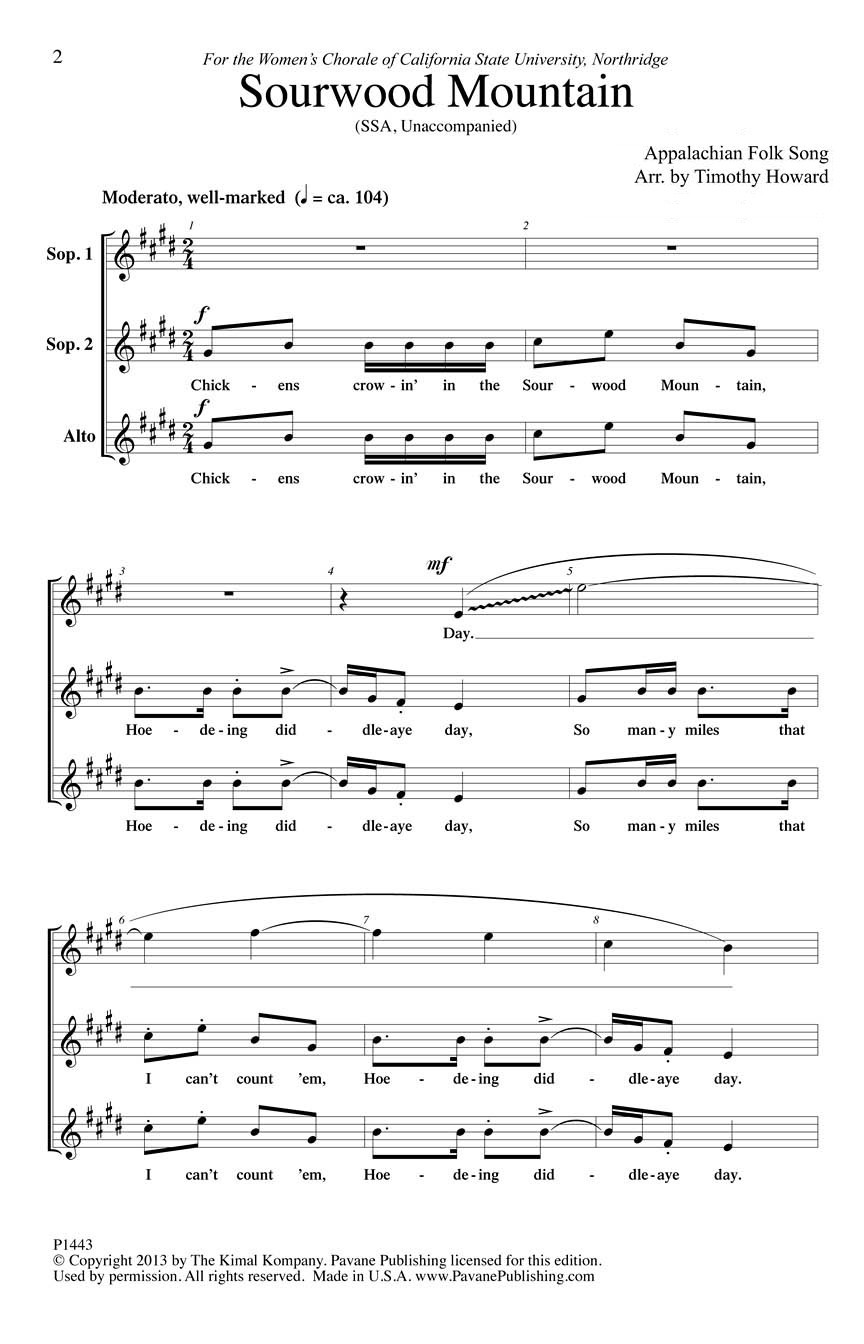 A “Copland-esque quality” pervades this Appalachian folk song arrangement suitable for collegiate and high school ensembles. Composed for the Women’s Chorale of California State University, Northridge, the arrangement’s vocal writing resembles fine fiddle-playing styles. Secular text. Amy Kotsonis mentions this arrangement in her doctoral dissertation, Appalachian Folksongs in the Choral Setting… (page 140). Availability: Available as a digital download from SheetMusicPlus and SheetMusicDirect. Not currently available in print. |